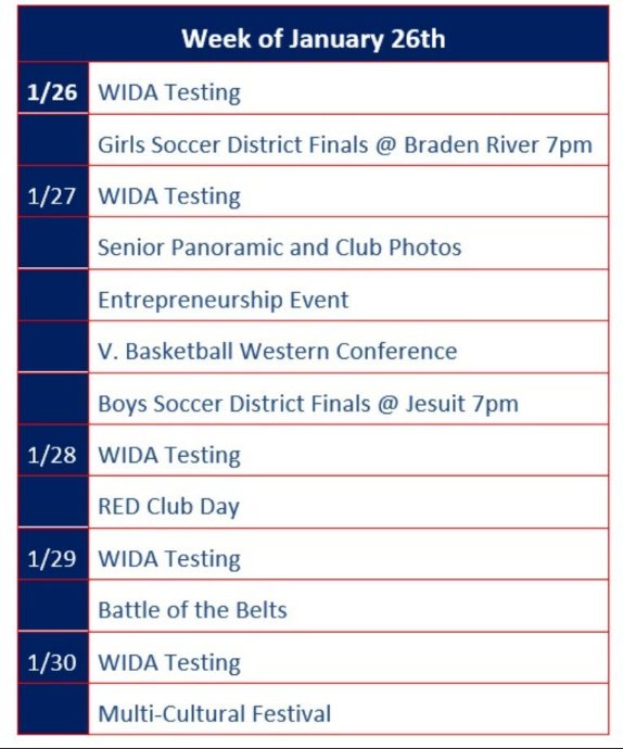 As we move into the fourth week of the second semester, I want to thank you for your continued partnership and support. This time of year, is important as students settle into routines, build momentum in their learning, and begin working toward their academic and personal goals.