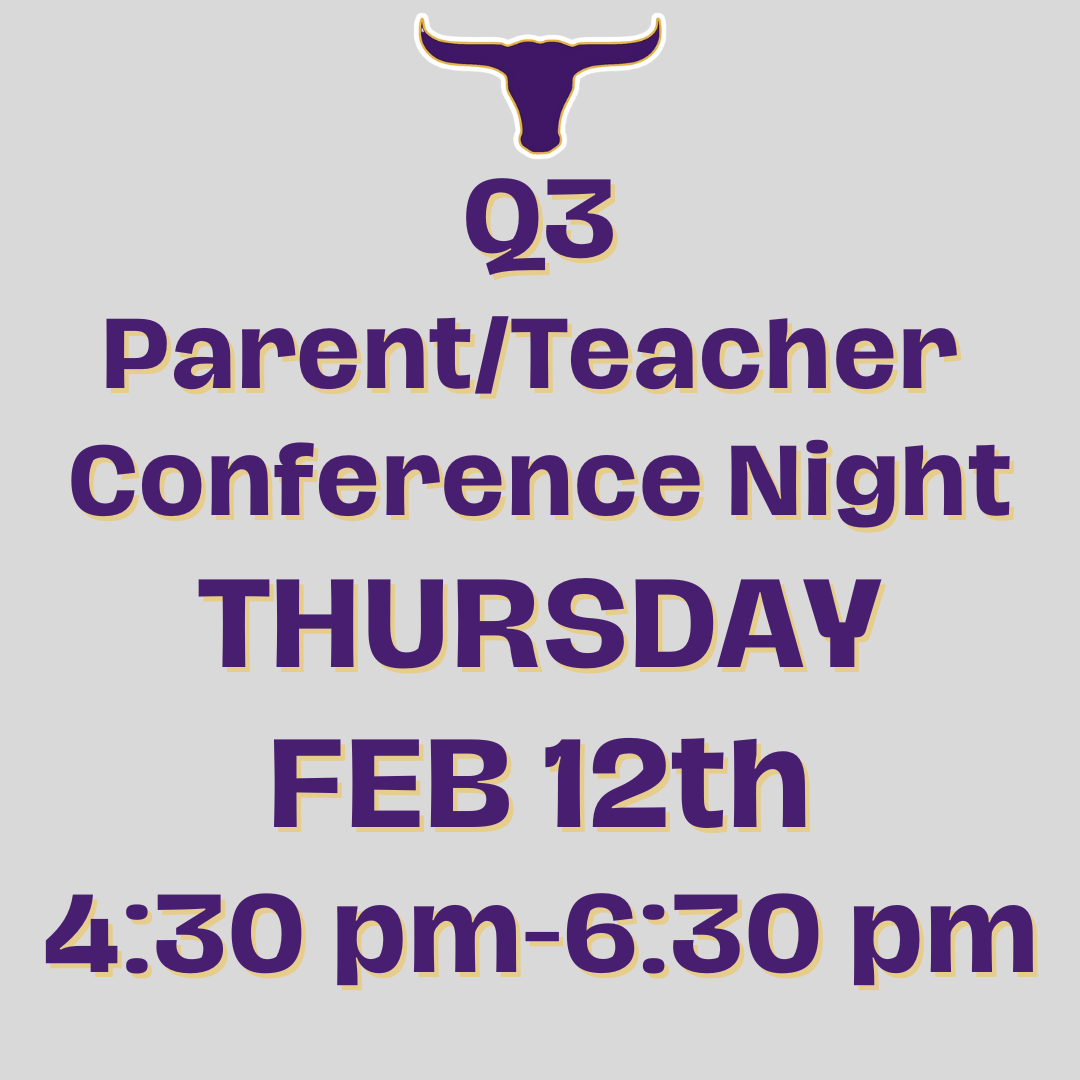 Thursday 2/12- Quarter 3 Parent/Teacher Conference Night- 4:30-6:30 pm Friday 2/13- Student Day at the Florida State Fair- Non-Student Day Monday 2/16- President's Day- Non-Student Day Thursday 2/19- Senior Panoramic Picture Day