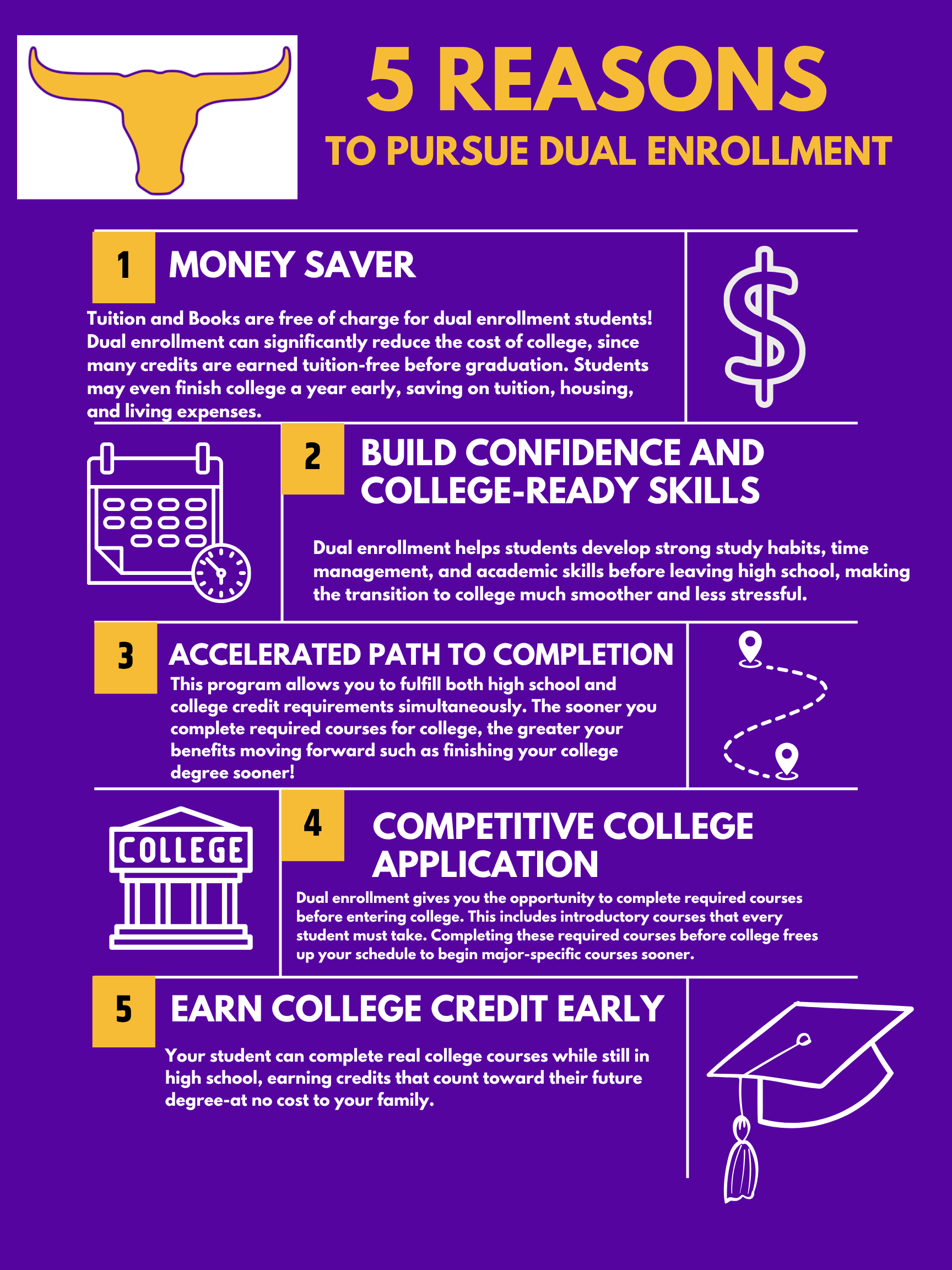 Being on time to class is a key part of every Longhorn's academic success. Students are given 5 minutes between classes, with a 1-minute warning bell to help them stay on track. It’s important that students do not wait for the warning bell to begin heading to class—doing so may result in tardiness.