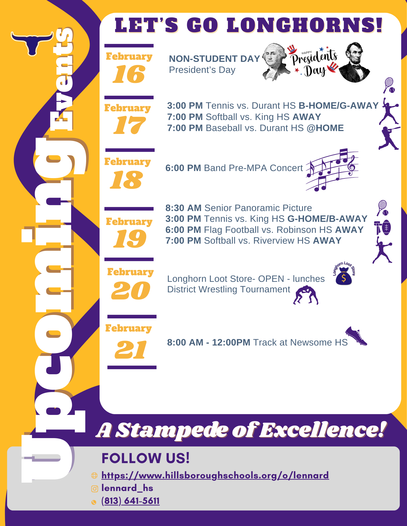 We hope you are having a restful four day weekend as we continue the weekend by celebrating President's Day on Monday, February 16th. This is a non-student day for Hillsborough County Public Schools. We want to congratulate all of our Longhorn FFA students who participated in the Florida State Fair. We are so proud of our students both inside and outside of the classroom.