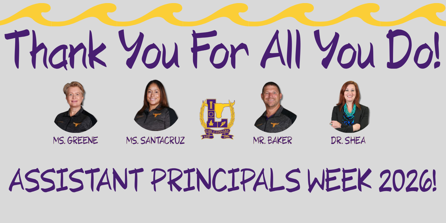Please join me in thanking our Assistant Principals for their hard work, long hours, and unwavering commitment to our Lennard school community. We are truly fortunate to have such an outstanding administrative team supporting our students, staff, and families!