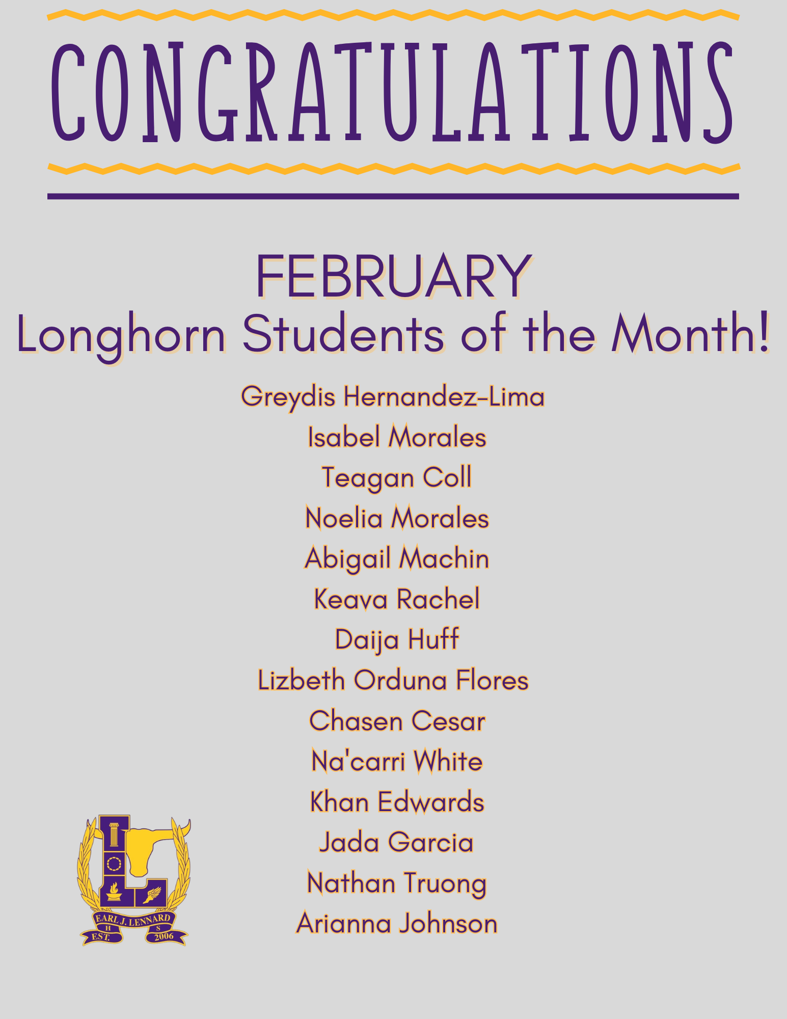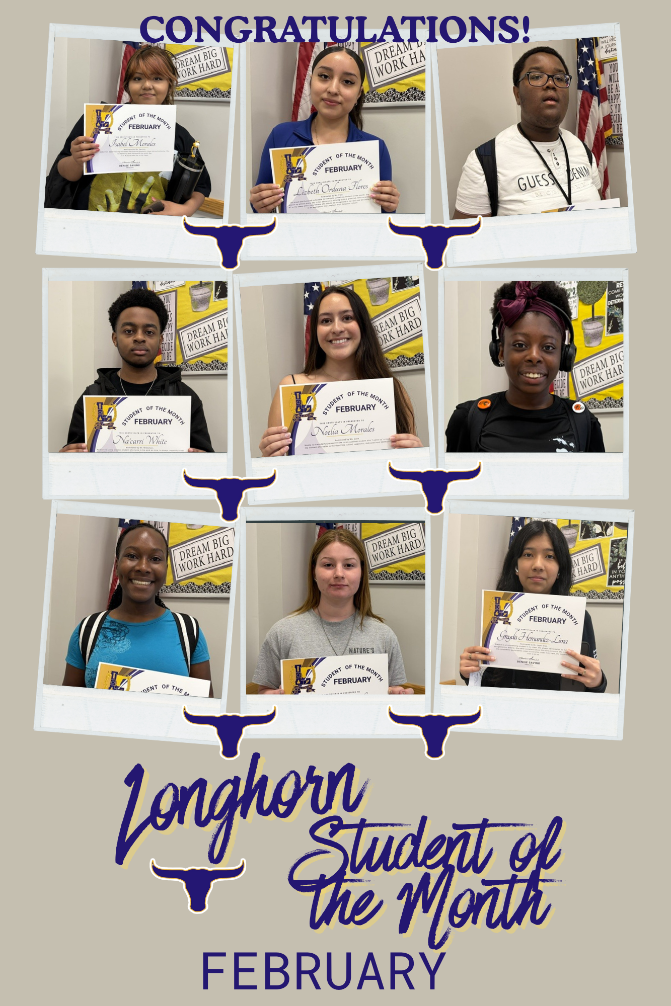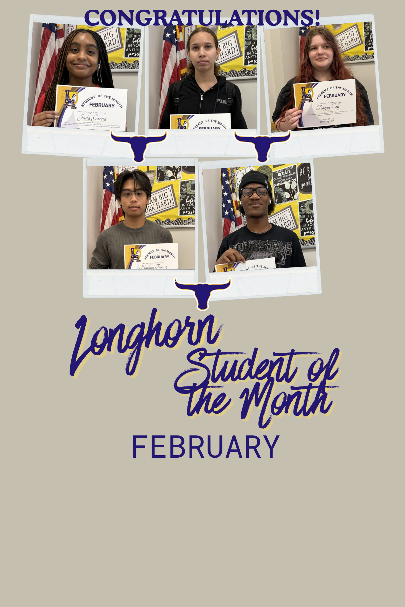 📣 A Longhorn Shoutout to our Students of the Month for the month of February! Keep up the good work Longhorns!
