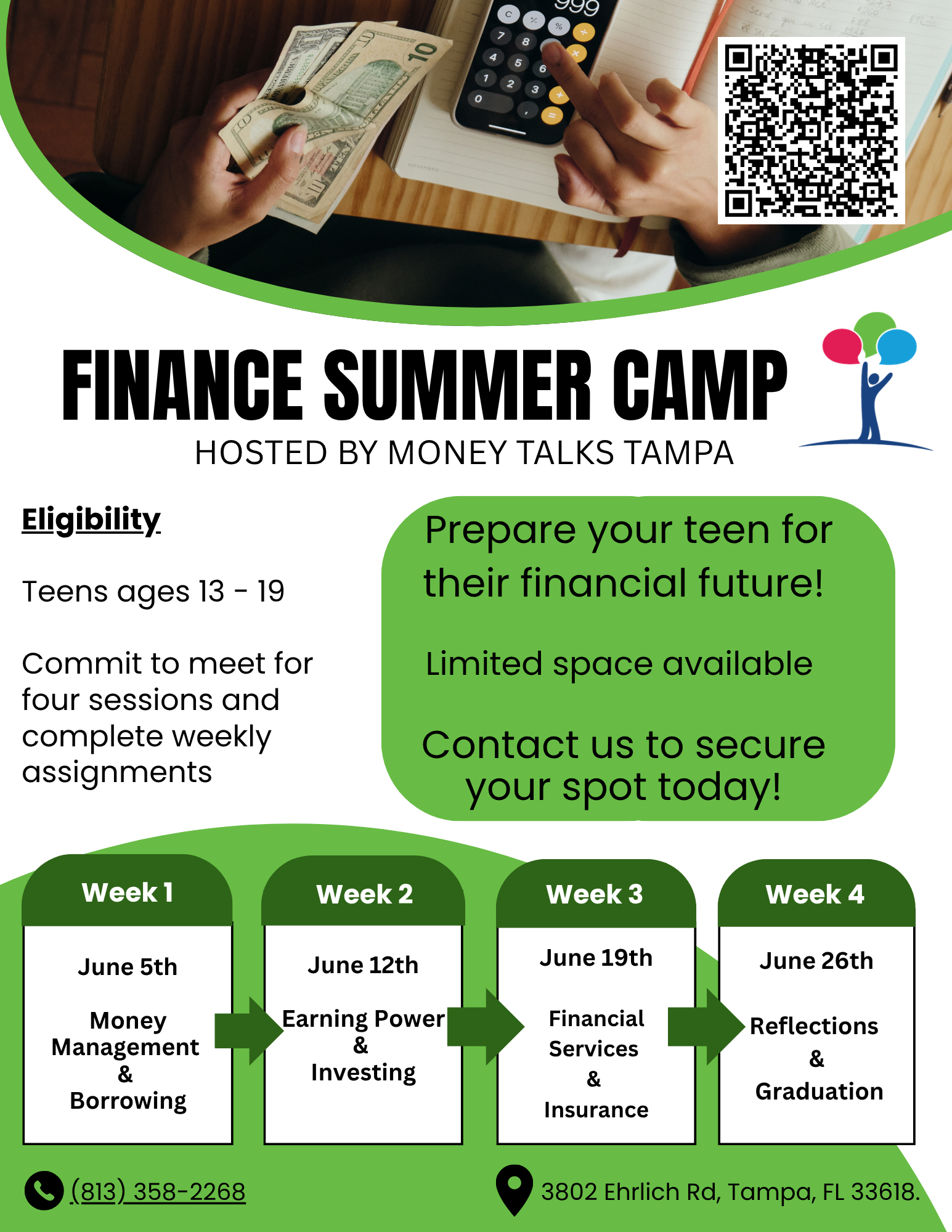 Students and families, you are invited to our Finance Camps running throughout June at Money Talks Tampa.