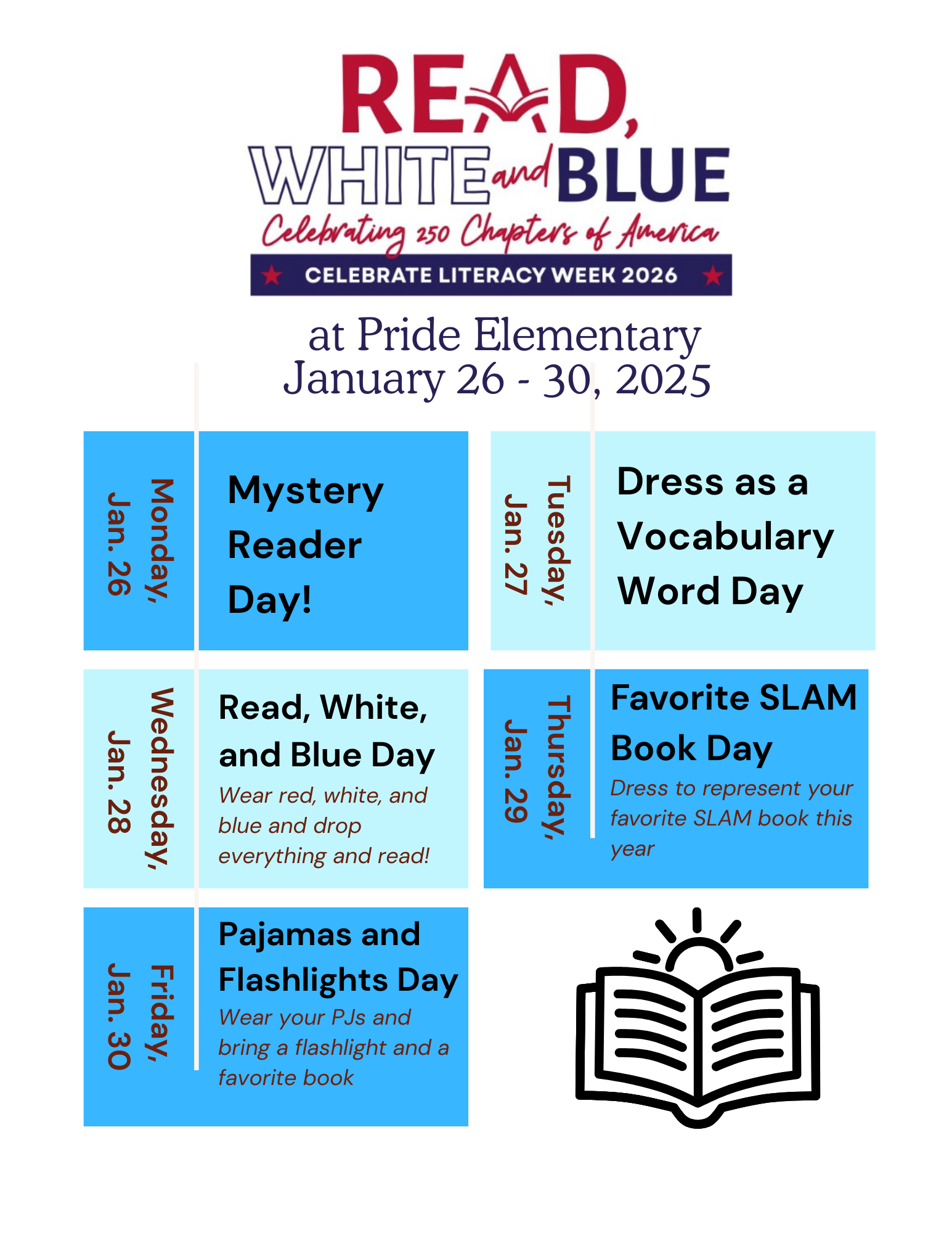 Thursday marked the 100th day of school, and we celebrated being 100 days kinder, smarter, stronger, and more confident learners. That evening, we were proud to celebrate our very own Teacher of the Year, Mrs. Berger, at the Hillsborough’s Treasures–themed 2026 Excellence in Education Awards- what an honor! We wrapped up the week on Friday with the 101st day of school, and we spotted Dalmatians all over first grade. As cooler weather moves in this week, please be sure students arrive bundled up, on time, and ready to learn. It's Literacy Week- see below for all of the themed days! Let’s make it another great week at Pride- go Lions! 🦁 Yo-ho-ho and onward we go! Mrs. Meyer and Mrs. Moncrief |