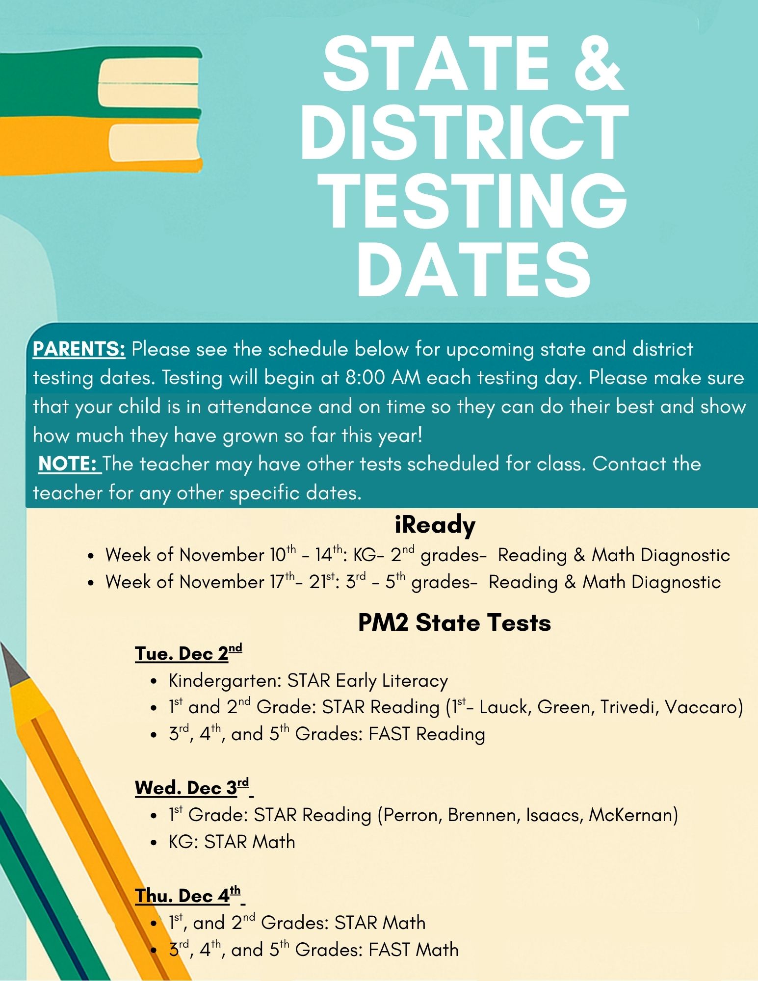 This week kicks off PM2 Testing for Kindergarten through 5th grade. Our students have worked so hard, and we can’t wait to see how much they’ve grown! You can help set them up for success by making sure they get: